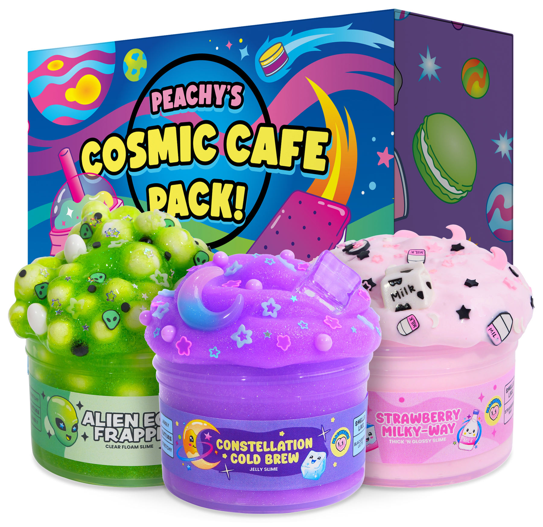 Get ready for a monthly surprise! Each PeachyBbies Subscription Box features three exclusive slimes inspired by a brand-new theme, complete with fresh textures, vibrant colors, and delightful scents. Every box is a creative experience, beautifully designed to match the unique monthly theme.