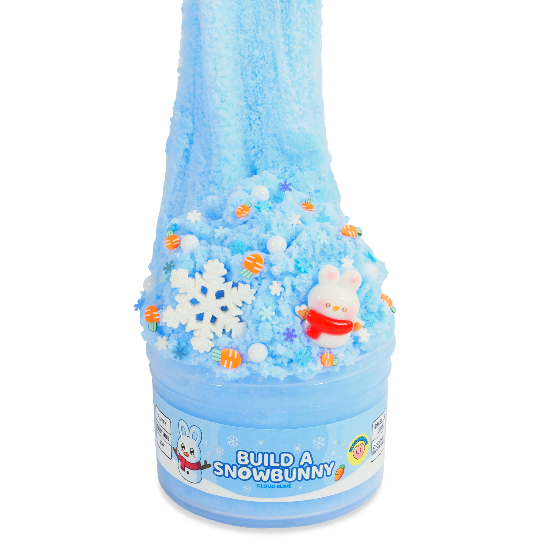 Texture: A cloud slime texture. This texture is super fluffy and drizzly, amazing for stretching and relaxing! Dipped in crunchy fake snow.