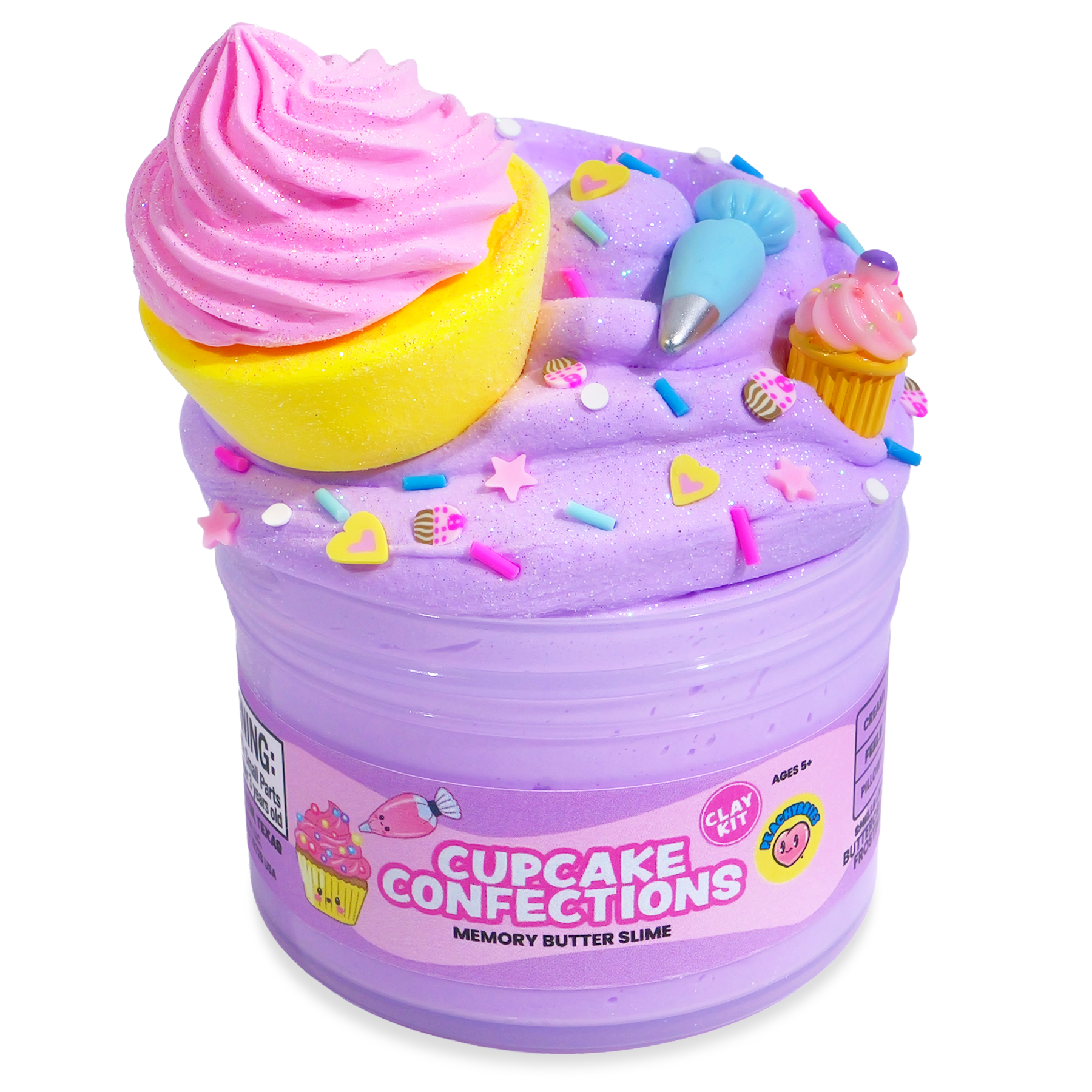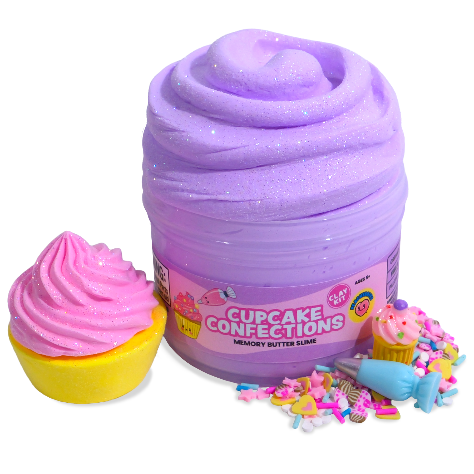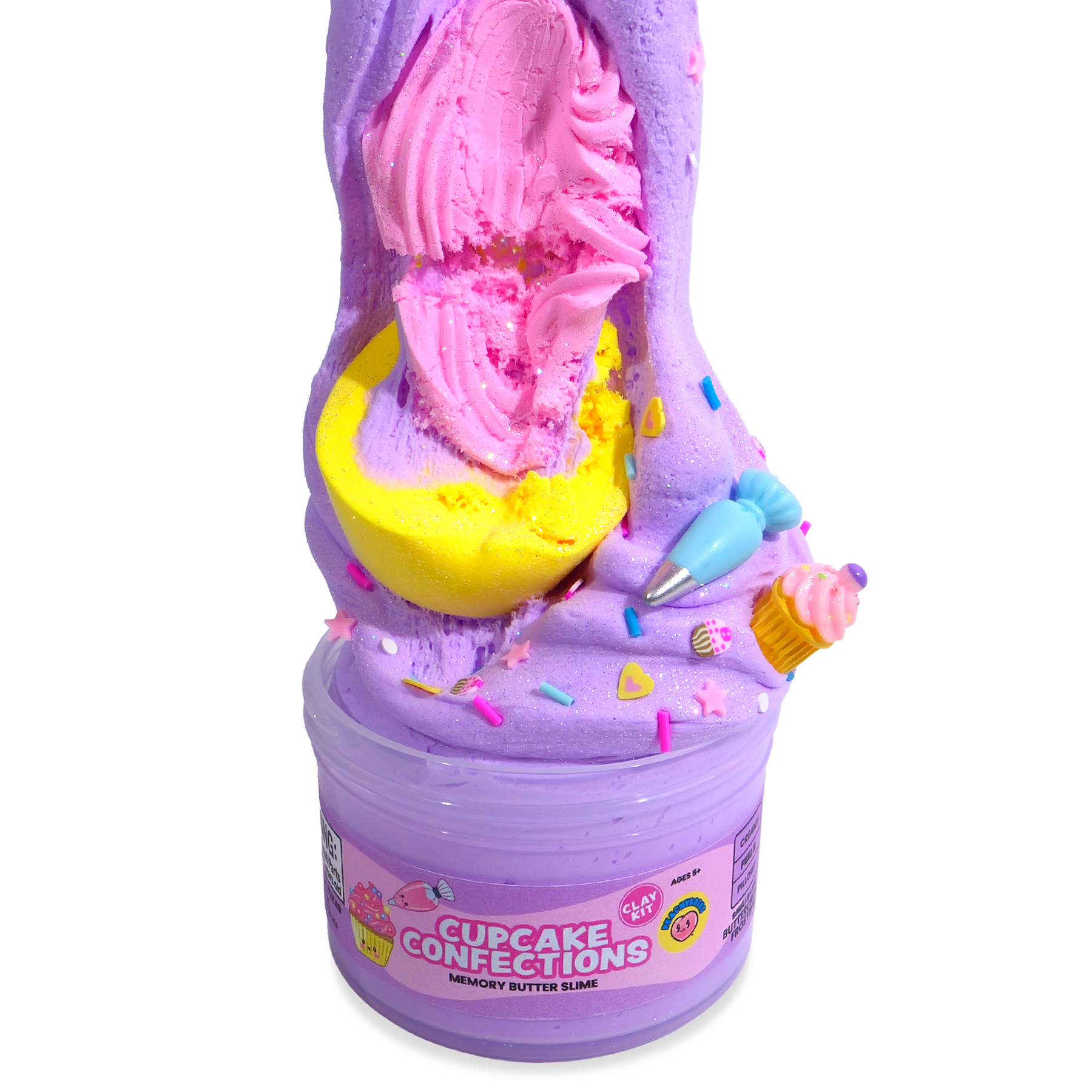 Texture: Memory Butter slime base with "Cupcake Frosting" and "Cupcake Base" clay toppers you can mix in yourself!